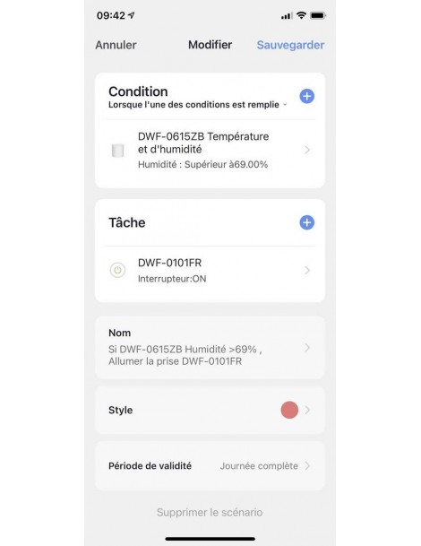 Déclenche les scénarios quand la température ou l'humidité dépasse le seuil programmé.