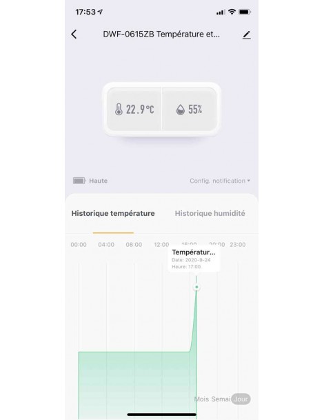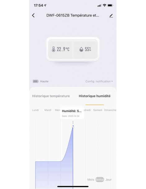 Historique de température et d'humidité.