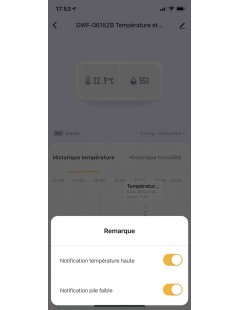 Notification sur smartphone quand la température est supérieure à 40°C.