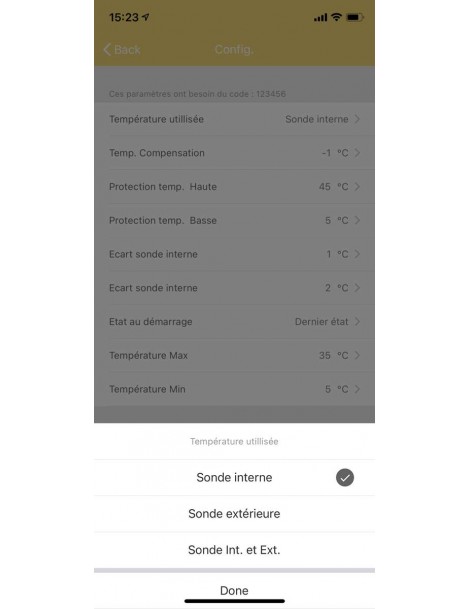 Seuil de température haute et basse programmable